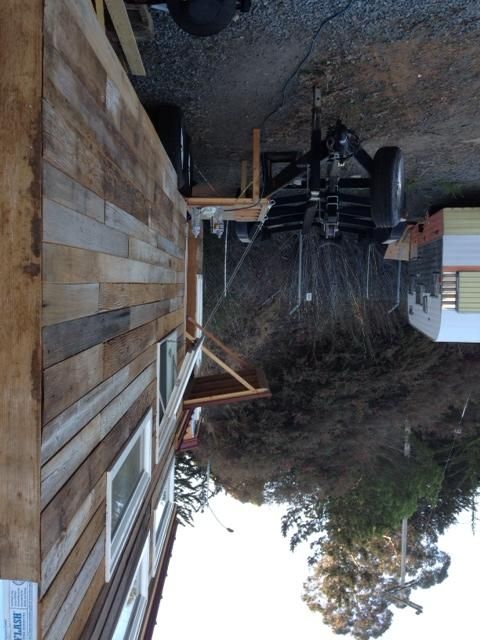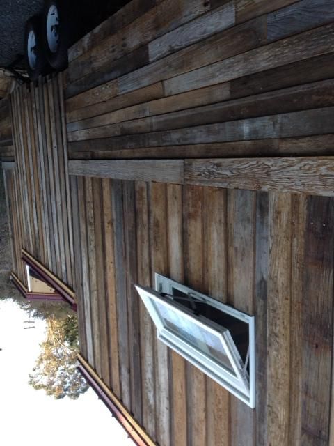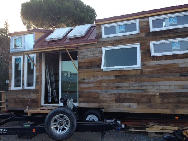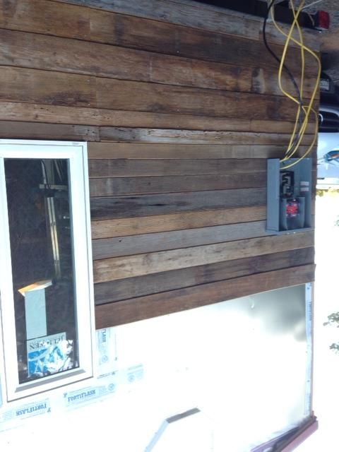 Pictures below of our progress with the exterior siding & the electrical wiring. Check out our newly installed gable windows, porch and awning, and shed on the tongue of the trailer. :)